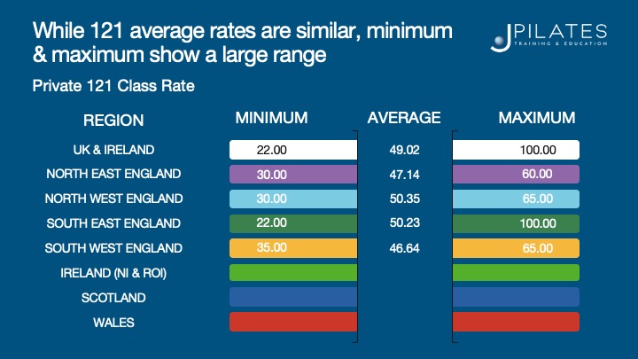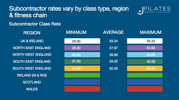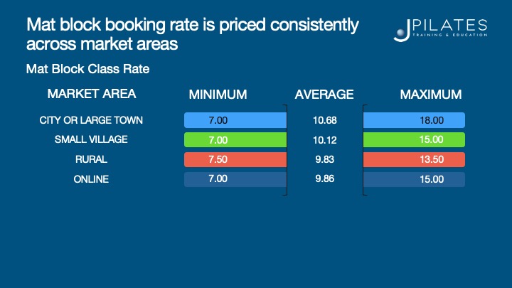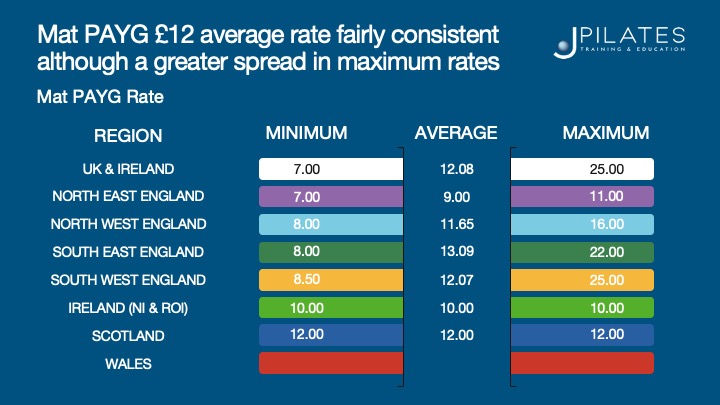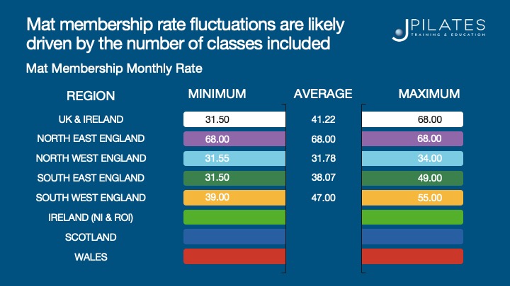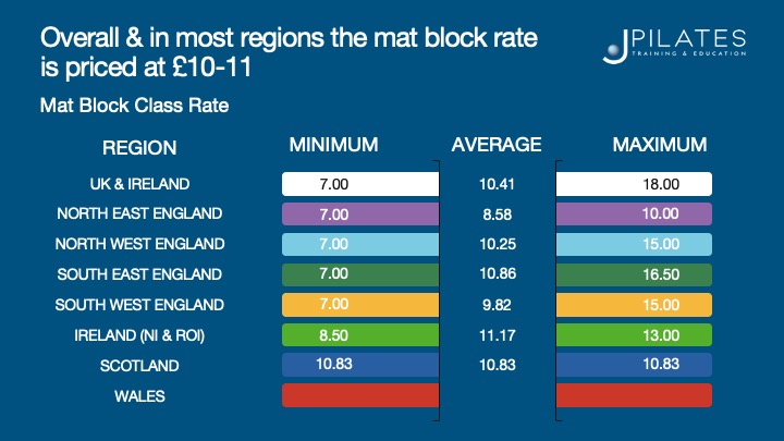 - The average cost per Mat class is £12 across regions & market areas.