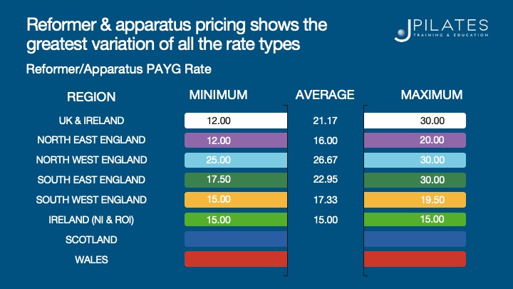 - Surprisingly, there is only a £2 difference between teachers who offer Mat and those who offer Studio Equipment.
