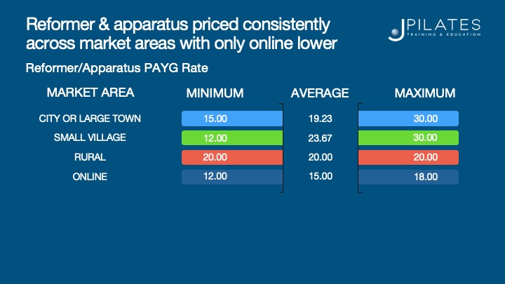 • Surprisingly, there is only a £2 difference between teachers who offer Mat and those who offer Studio Equipment.